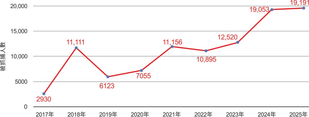 圖1:2017年—2025年全能神教會基督徒被抓捕人數