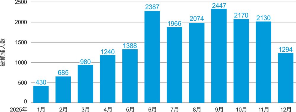 圖2:2025年1月—12月全能神教會基督徒被抓捕人數