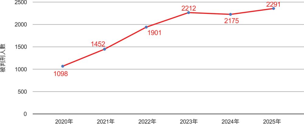 圖3:2020年—2025年全能神教會基督徒被判刑人數